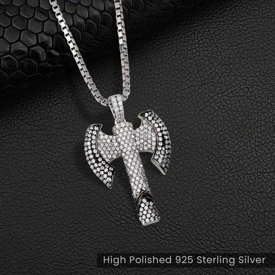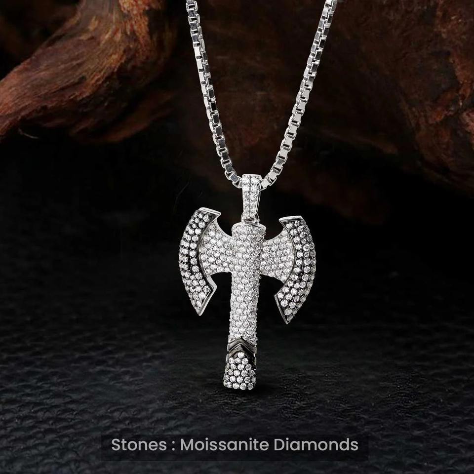 จี้เพชรโมอิสซาไนต์ VVS ดีไซน์สุดเท่ห์ สไตล์ฮิปฮอป ประดับเพชรเต็มตัว พร้อมสร้อยคอเงินแท้ 925 ชุบทอง ดีไซน์ขวานไวกิ้งสุดแฟชั่น