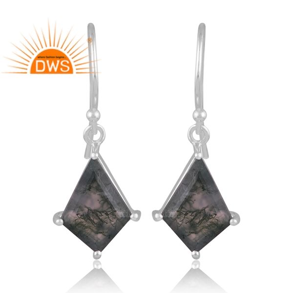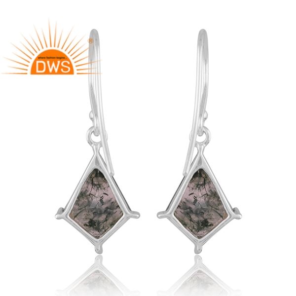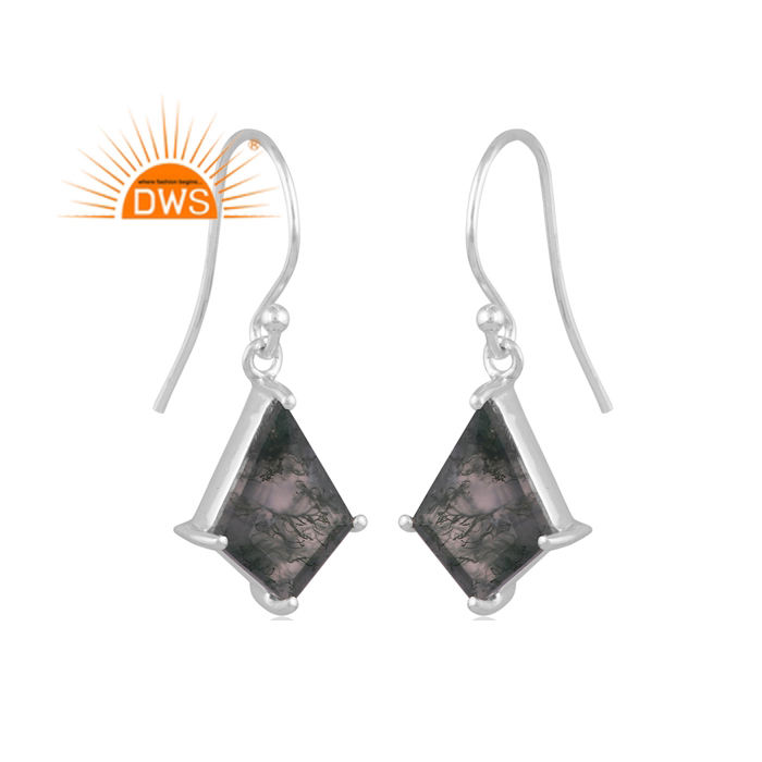 ต่างหูห้อยประดับพลอยมอสอาเกตสีเขียวธรรมชาติ เงินแท้คุณภาพดี ออกแบบโดยดีไซเนอร์ชั้นนำ ผู้ผลิตเครื่องประดับสั่งทำ