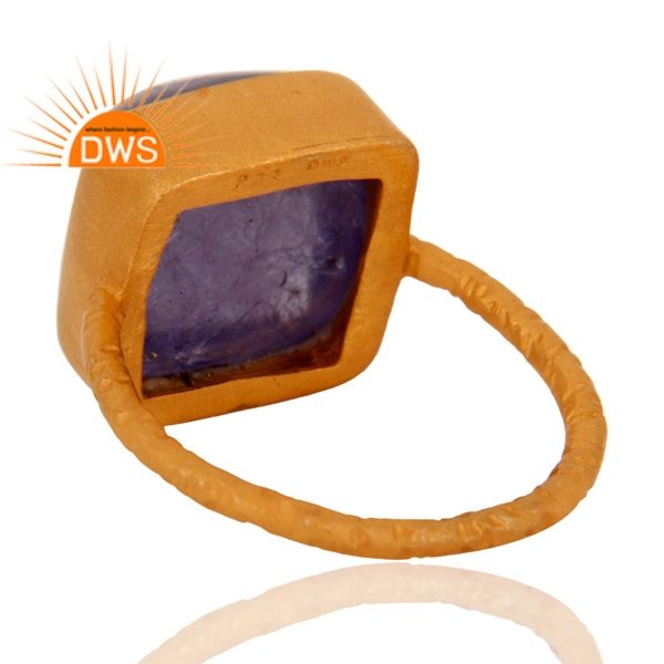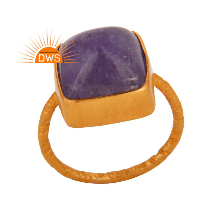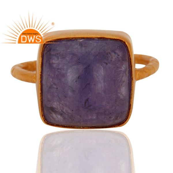 แหวนเงินแท้ชุบทอง 18K ประดับด้วยพลอยแทนซาไนต์ธรรมชาติ ดีไซน์สวยหรู สามารถสวมซ้อนกันได้ ผลิตโดยผู้ผลิตเครื่องประดับคุณภาพสูง
