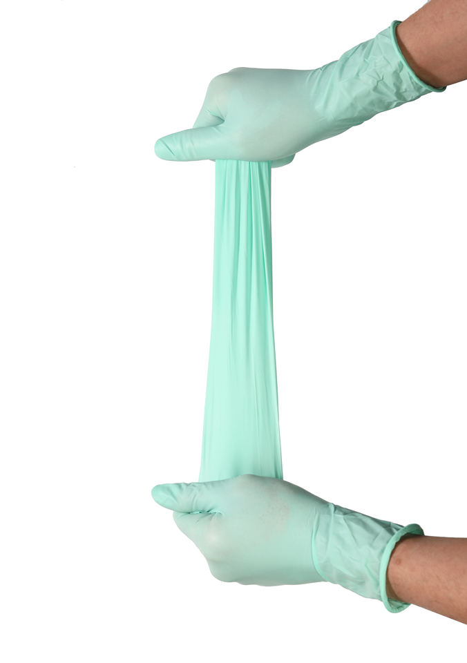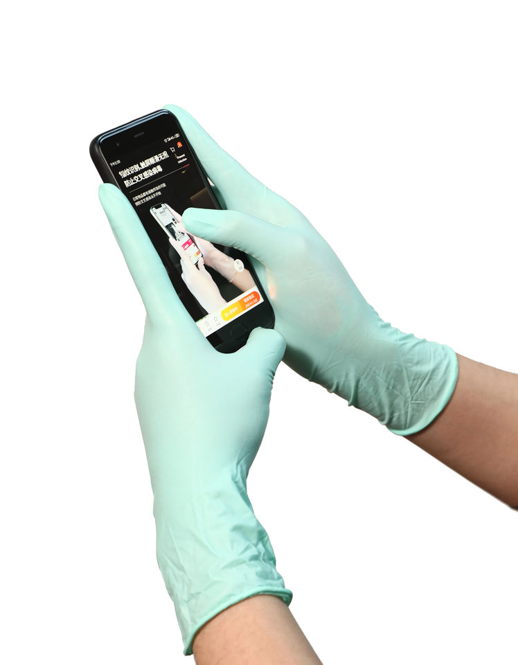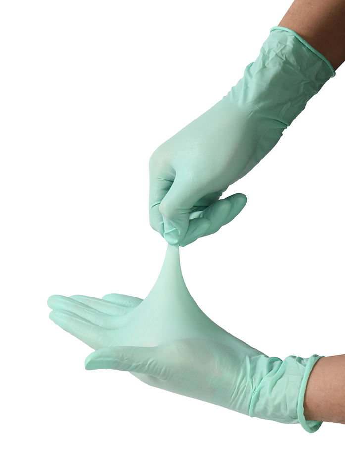 ถุงมือยางไนไตรล์ยาวสีเขียวแบบใช้แล้วทิ้งมีความยืดหยุ่นสำหรับป้องกันแขนในห้องครัว