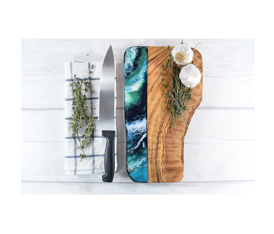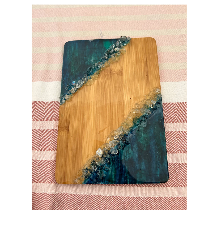 เขียงไม้ชีสอีพ็อกซี่ทำจากเรซินและงานไม้รูปทรงสี่เหลี่ยมปรับขนาดได้และดีไซน์งานฝีมืออินเดีย