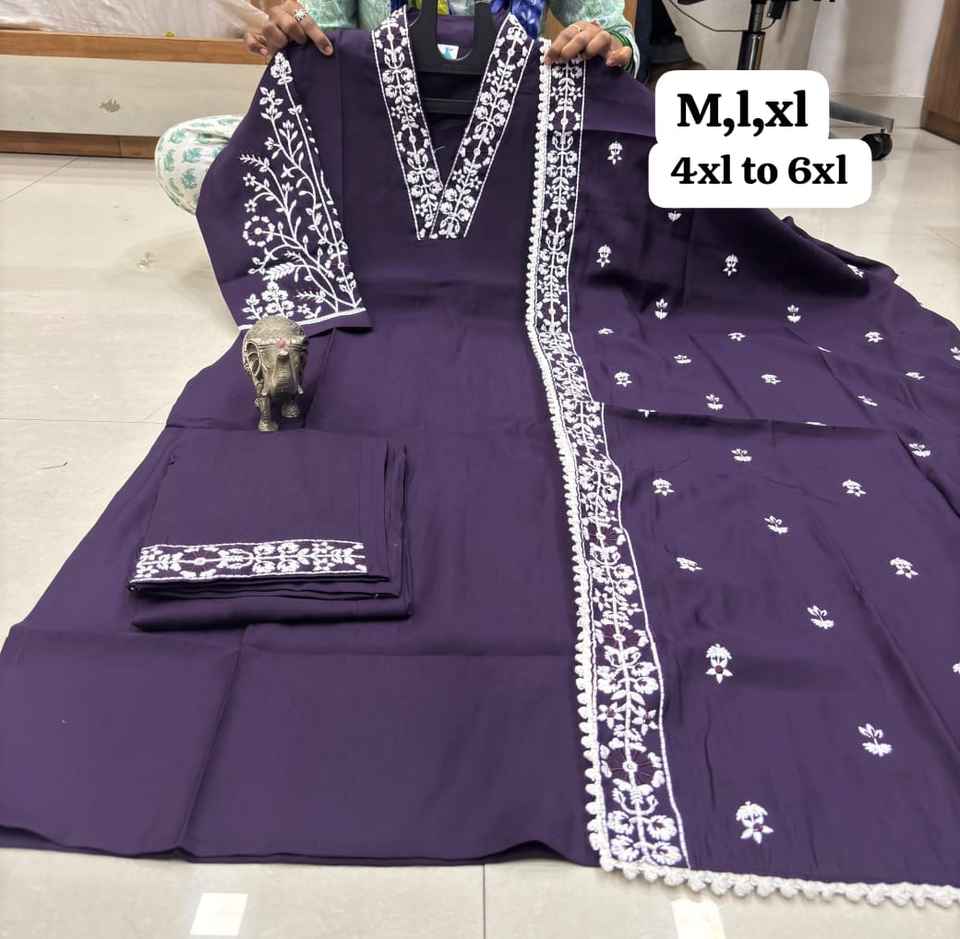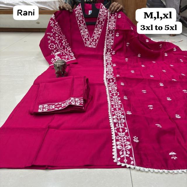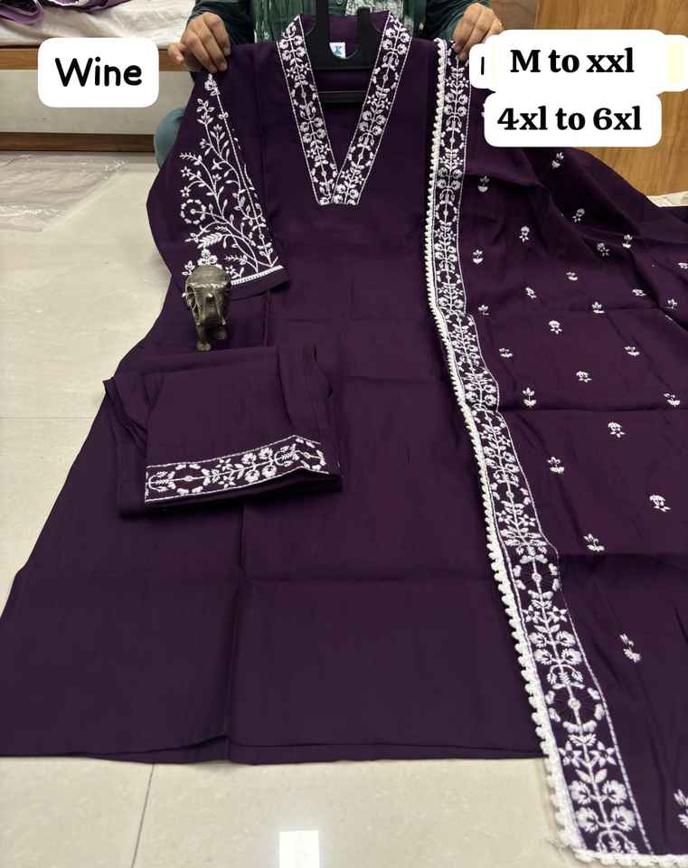 Product Name:Fashionable Heavy Muslin With Lakhnavi Work Kurti Pant And Dupatta