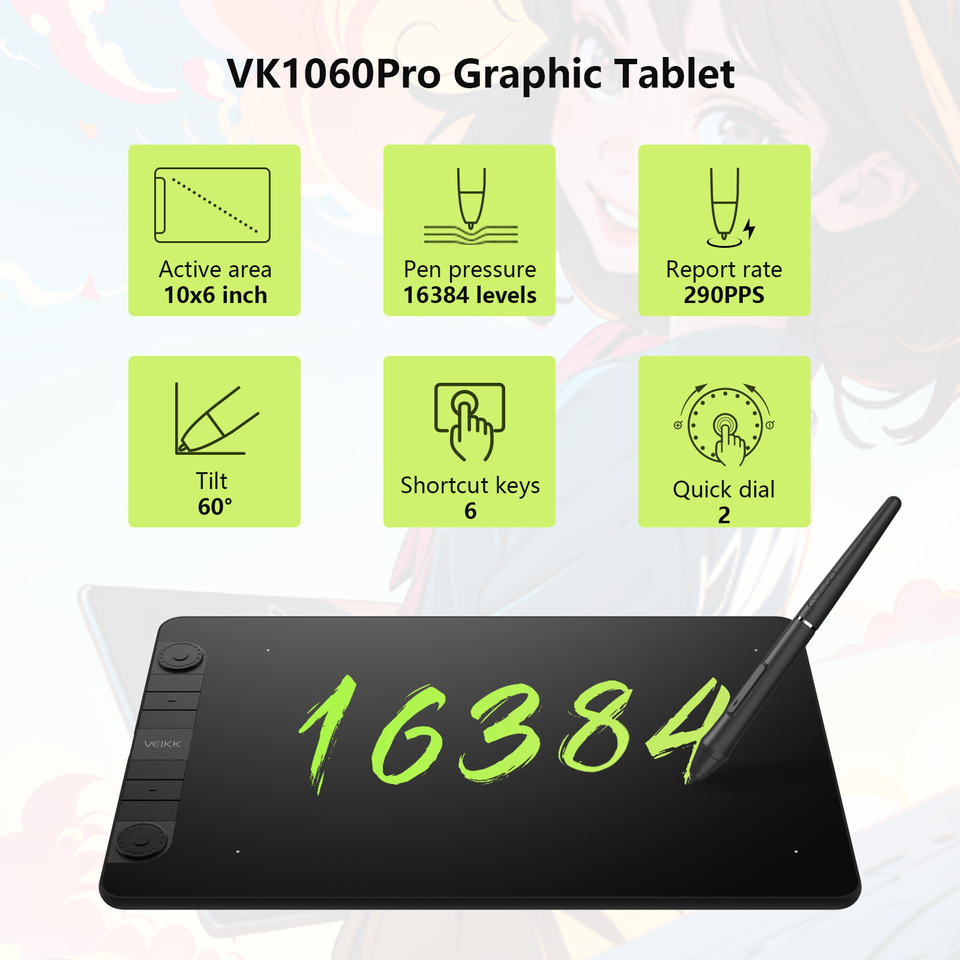 Veikk VK1060โปรแอนดรอยด์ Windows Mac ลินุกซ์ปากกาวาดภาพกราฟิกสำหรับขายแท็บเล็ต