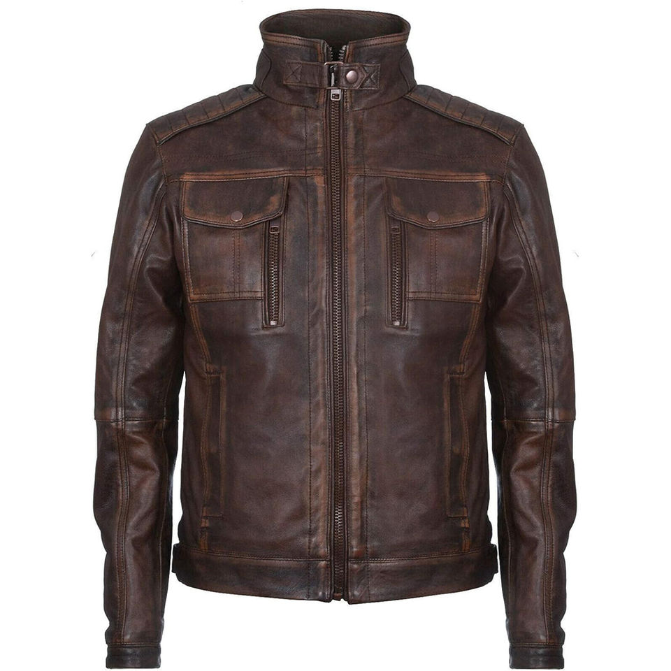 เสื้อแจ็คเก็ตหนังผู้ชายคุณภาพสูง 100%
