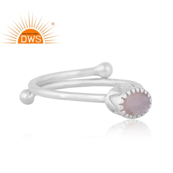 แหวนเงินแท้ประดับมูนสโตนสีขาวธรรมชาติ ดีไซน์ทันสมัย สามารถสวมซ้อนกันได้ ผลิตโดยผู้ผลิตเครื่องประดับตามสั่ง