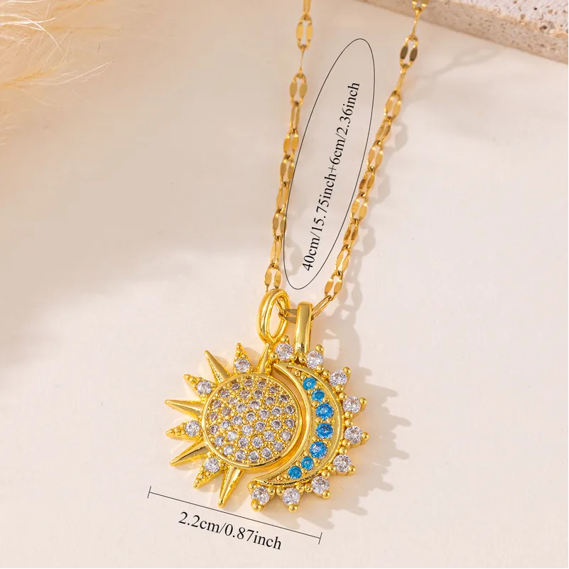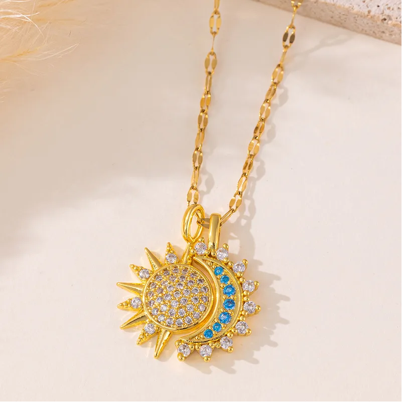เพื่อนที่ดีที่สุดเครื่องประดับคอชั้น unisex แฟชั่นดวงอาทิตย์ดวงจันทร์สร้อยคอ2โทน CZ ปริศนาทองเหลืองเสน่ห์ที่ทันสมัยคู่เชือก