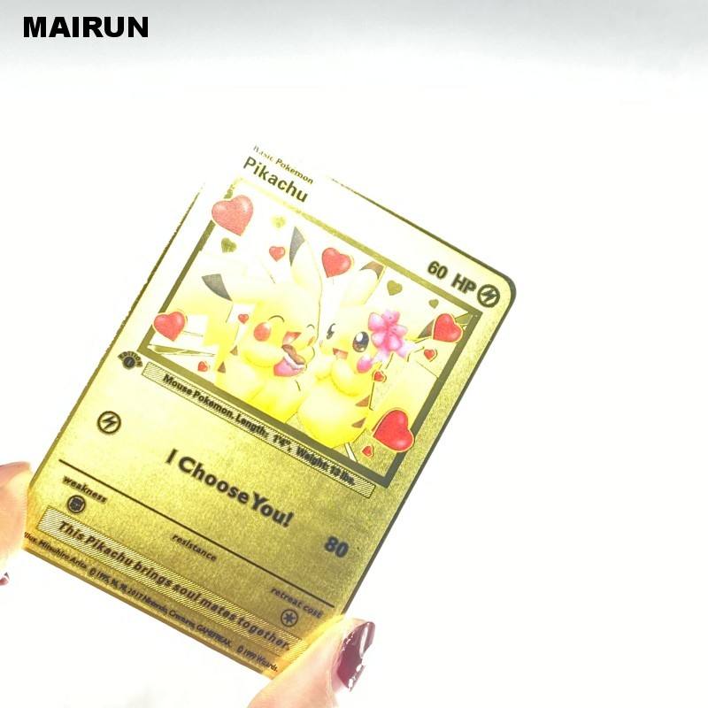 การ์ดโปเกมอนสำหรับวาเลนไทน์การ์ดเกมโลหะสำหรับคู่รักของขวัญที่ดีที่สุด