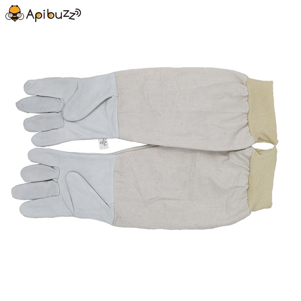 ถุงมือผึ้งหนังแพะที่ดีที่สุดสำหรับการขายถุงมือเลี้ยงผึ้งพร้อมยางหุ้มข้อผ้าใบวัสดุสำหรับผึ้ง