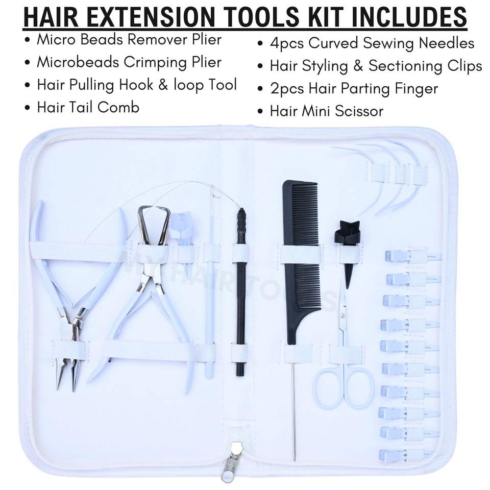 ชุดเครื่องมือต่อผมที่ดีที่สุด สีขาว พร้อมคีมหนีบไมโครริง