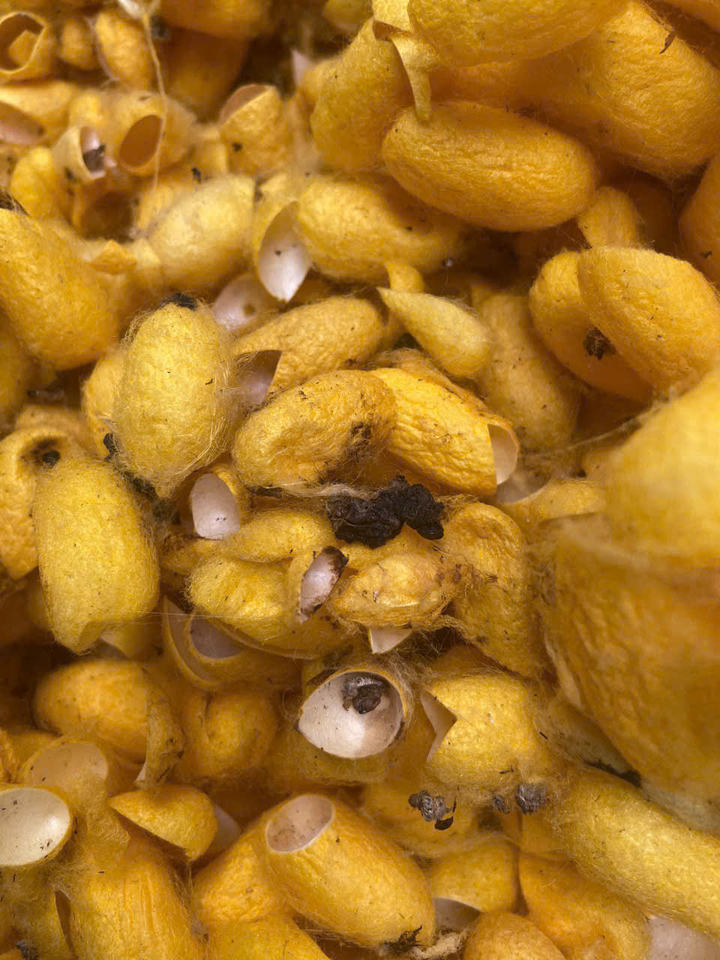 รังไหมหม่อนไหมสีเหลืองตัดครึ่งที่ดีที่สุดสวยงามจากเวียดนามทำความสะอาดรังไหมครึ่งท่อน