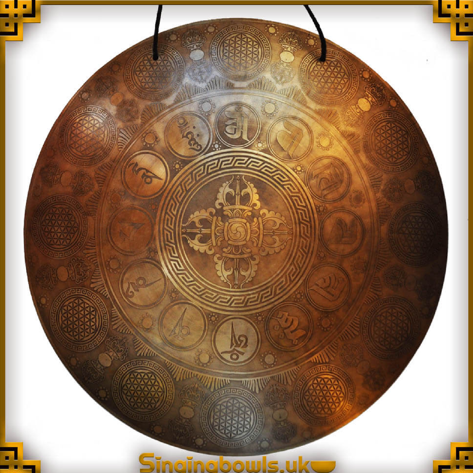 ฆ้องทิเบตทำด้วยมือขนาดใหญ่ทำด้วยมือสำหรับการสวดมนต์ทางศาสนาการบำบัดด้วยเสียงการทำสมาธิโยคะ