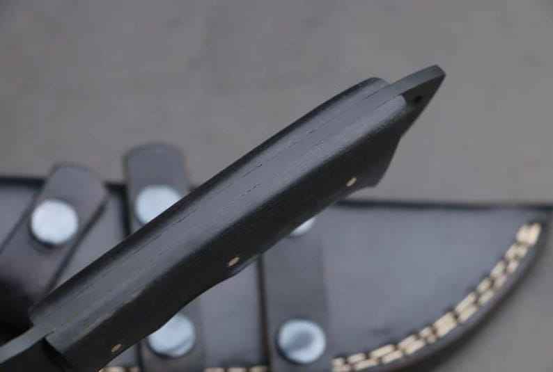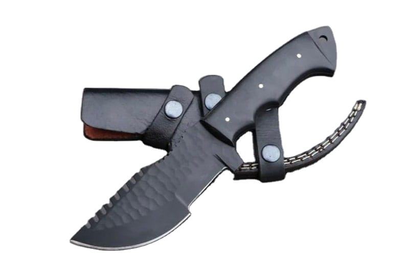 มีดแทรคเกอร์เหล็ก J2ทำด้วยมือด้าม Micarta เคลือบผงปลอกหนังควายปรับแต่งได้ตามต้องการ