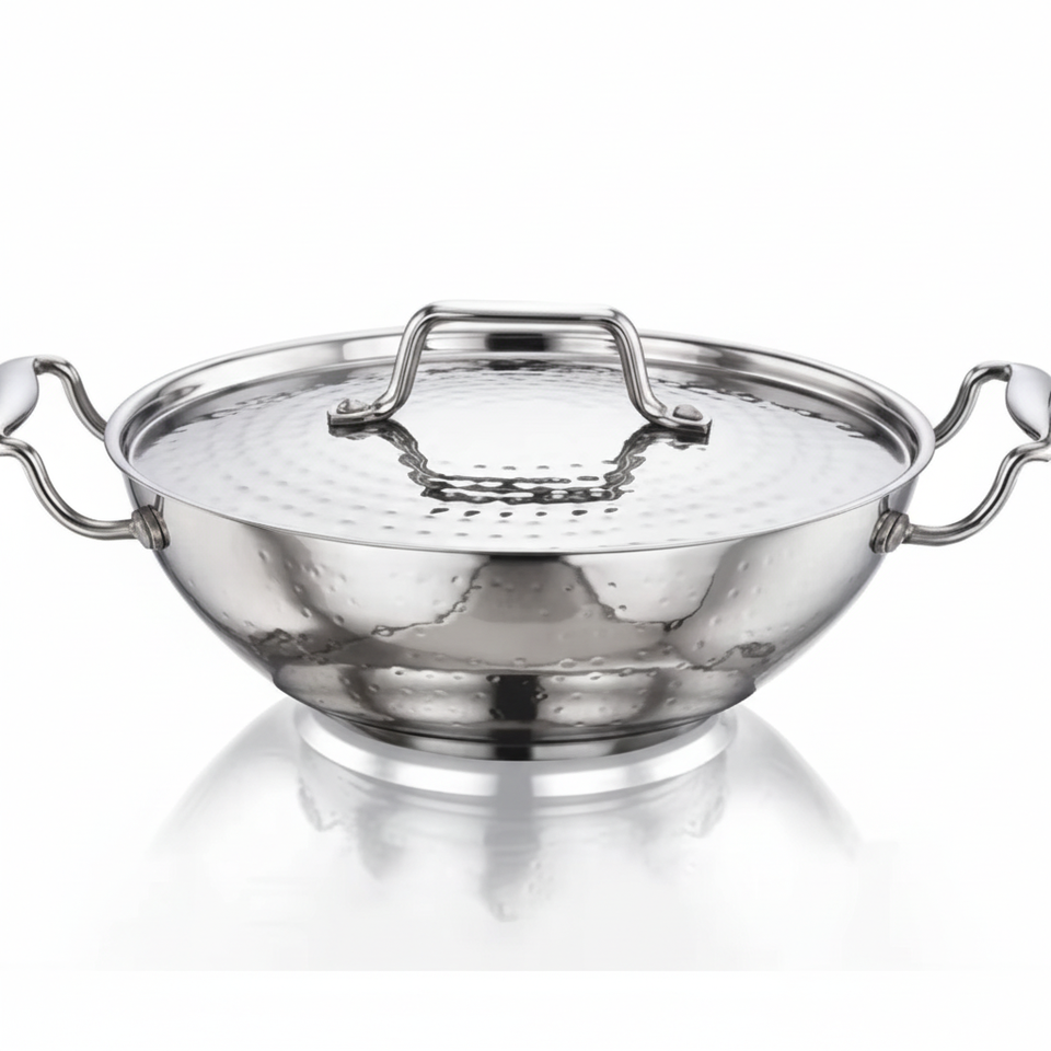 กระทะสแตนเลสไม่ติดกระทะพร้อมฝาแก้วสำหรับผัดบะหมี่/Cheowmein เตาอบเป็นมิตรกับสิ่งแวดล้อม