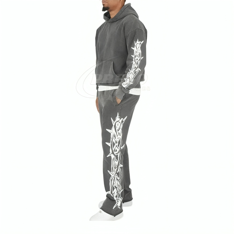 ชุดฮู้ดดี้และกางเกงวอร์มทรงเฮฟวี่เวท ล้างสีแบบแอซิด แบบเรียบ สำหรับสกรีนลาย สไตล์วินเทจ ระบายอากาศได้ดี สำหรับผู้ชาย ปี 2025