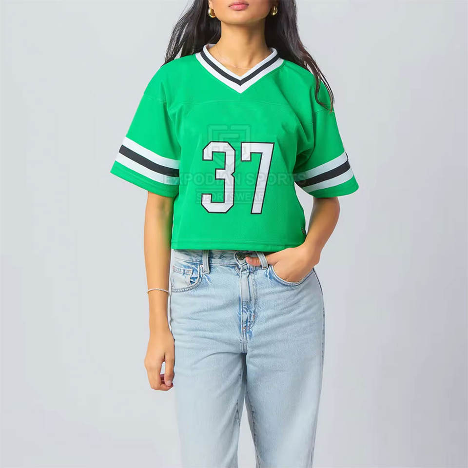 เสื้อครอปท็อปแขนสั้นสำหรับเล่นอเมริกันฟุตบอล คุณภาพสูงสุด ระบายอากาศได้ดี เหมาะสำหรับการฝึกซ้อมกีฬาสำหรับผู้หญิง