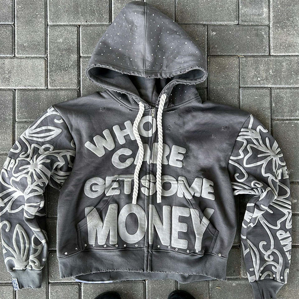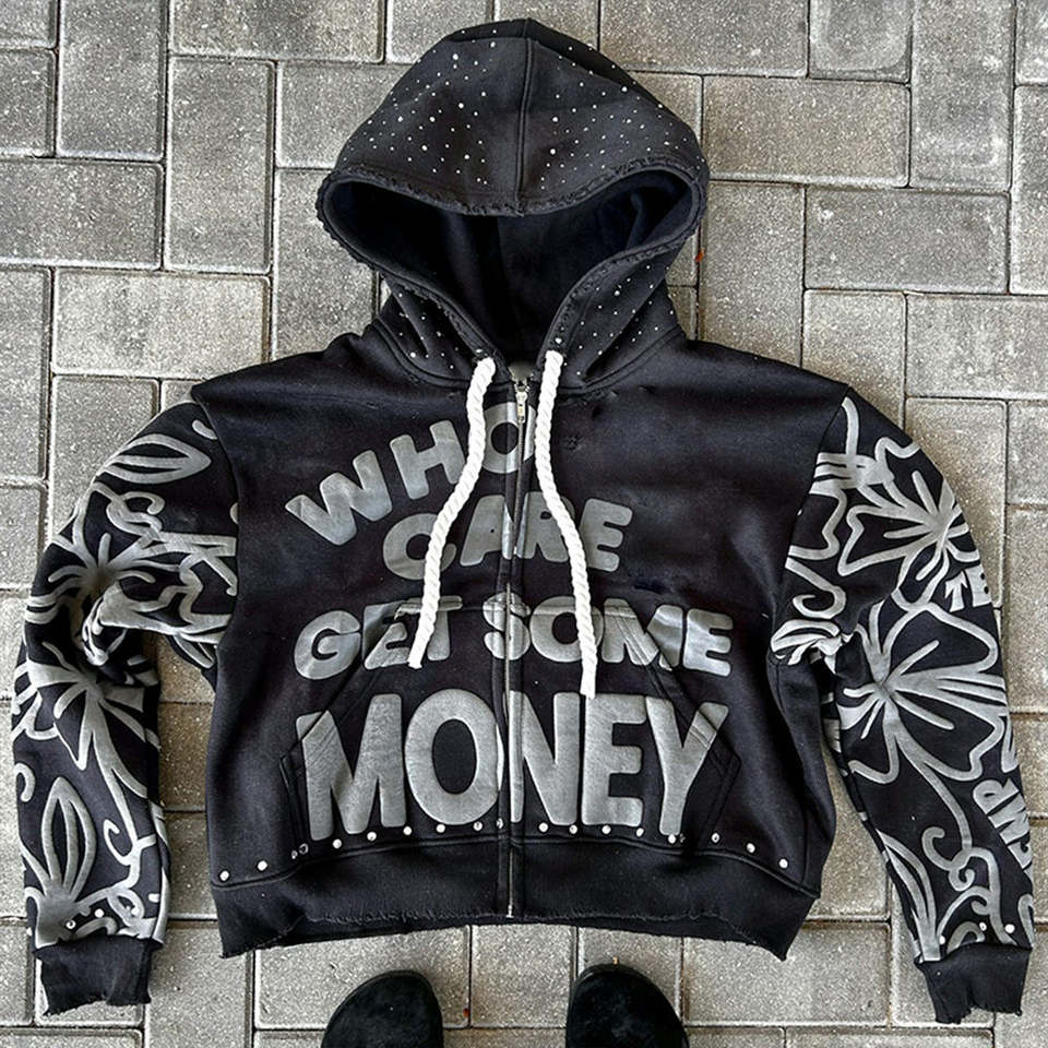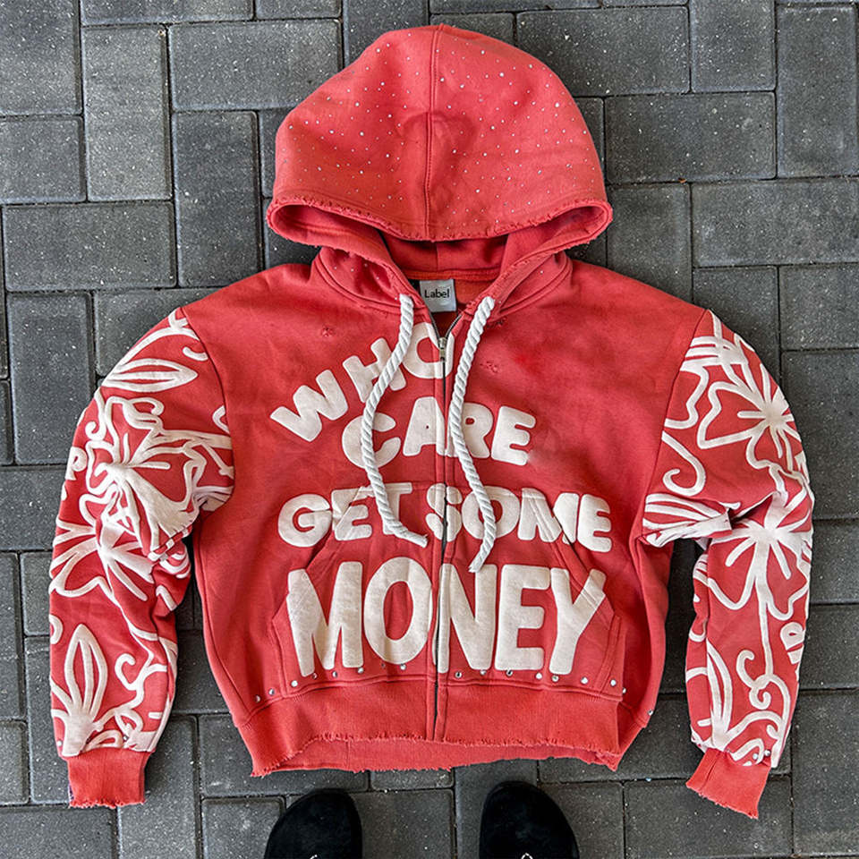 เสื้อฮู้ดมีซิปสำหรับผู้หญิงเสื้อฮู้ดแบบรูดซิป3D พิมพ์ลายพัฟปักแบบกำหนดเอง