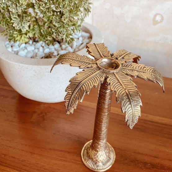 ที่วางต้นอินทผลัมชุบทอง งานฝีมือตกแต่งบ้านคุณภาพสูง ทำจากอะลูมิเนียมและทองเหลือง