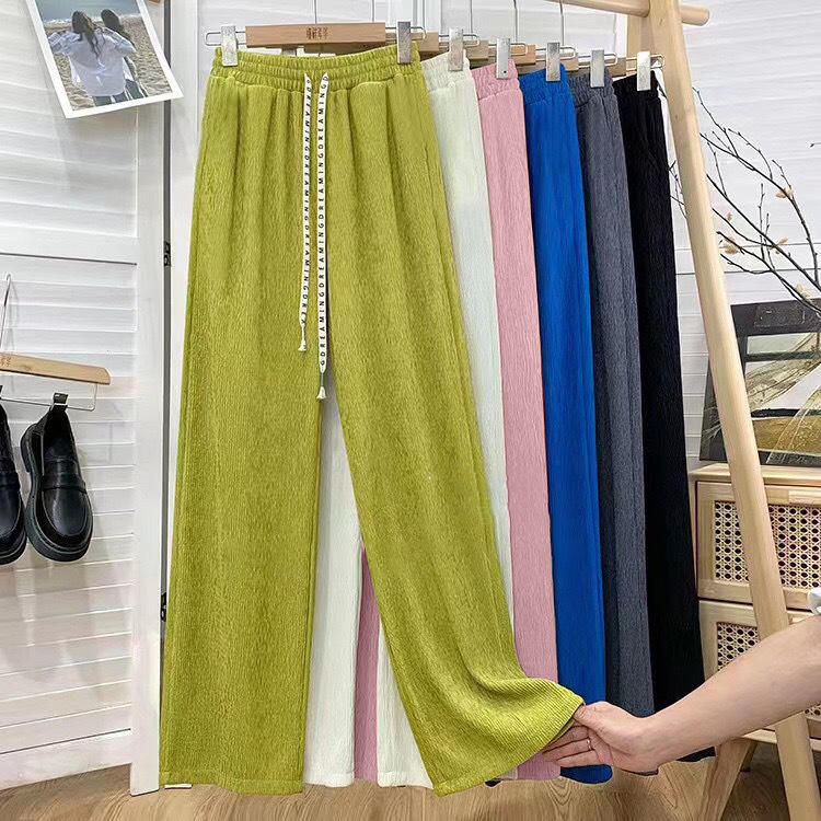 Best I-0524 New Ice Silk Wide Leg Pants Women's Dropped Long Pants Summer High Waist Slim Loose Straight Leg Casual Pants