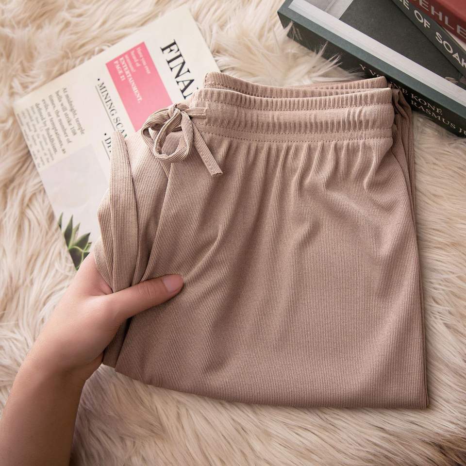 กางเกงขายาวผ้าไหมน้ำแข็งพิมพ์ลายสำหรับผู้หญิง ฤดูร้อน ผ้าบาง จีบหลวม ทรงตรง แห้งเร็ว ไม่ยับ เหมาะสำหรับใส่ทำงานหรือลำลอง