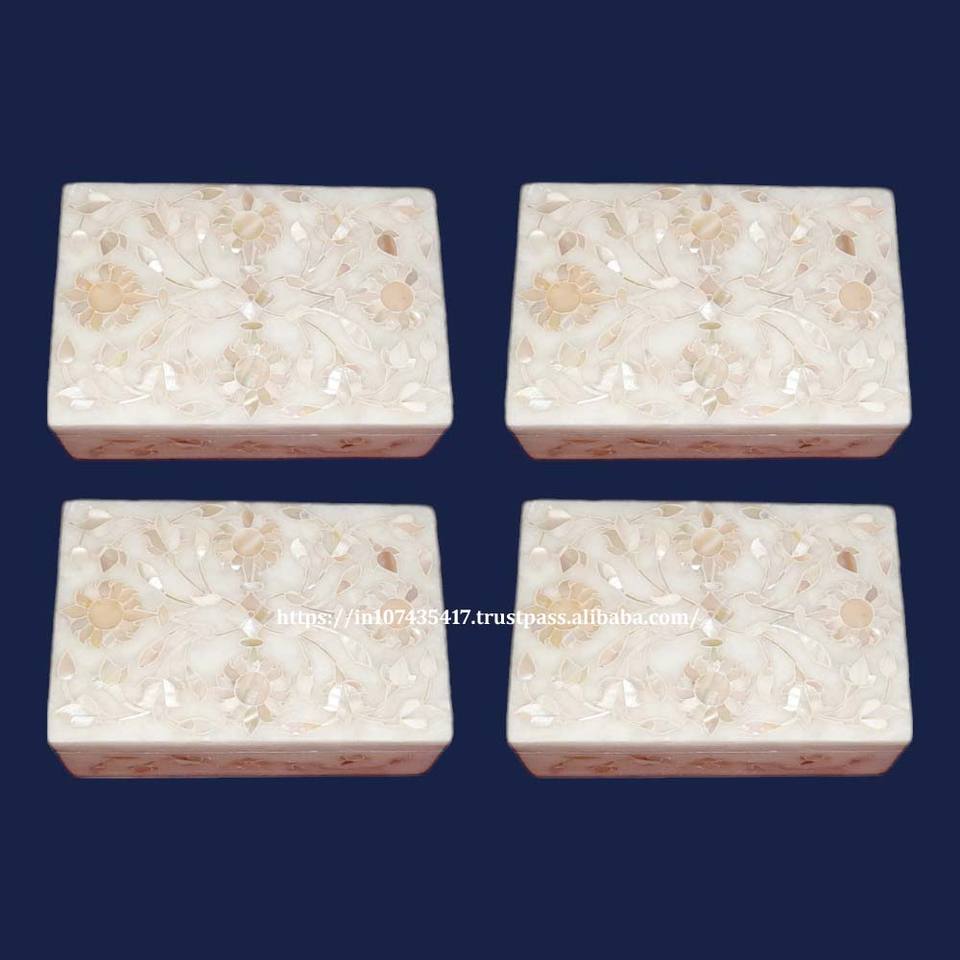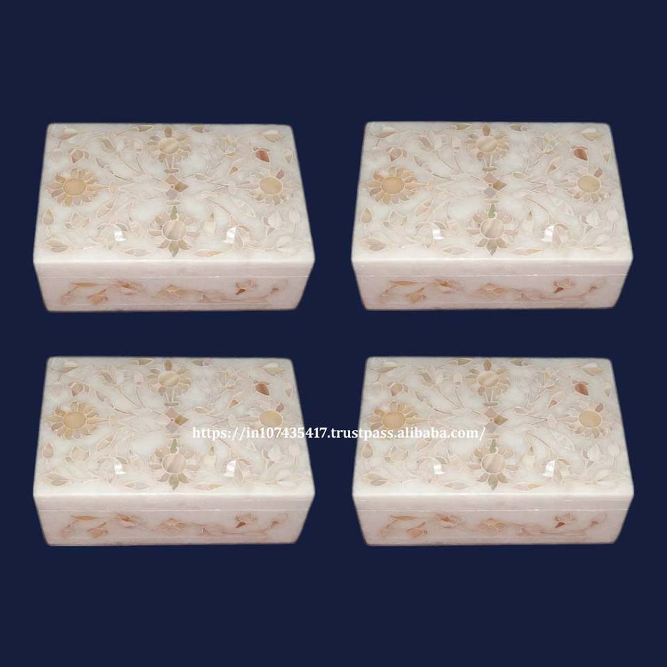 นักออกแบบอินเดียที่ดีที่สุดสินค้าแฮนด์เมดคุณภาพสูงกล่องฝังหินอ่อนสีขาวบริสุทธิ์พร้อมวัสดุแม่ของไข่มุกสำหรับกล่องเครื่องประดับ