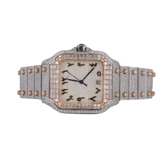 นาฬิกาเพชรคุณภาพส่งออกอินเดียที่ดีที่สุดสำหรับผู้ชาย นาฬิกาเพชรโมซานไนต์ VVS1 สี DEF จากผู้ผลิตในอินเดีย