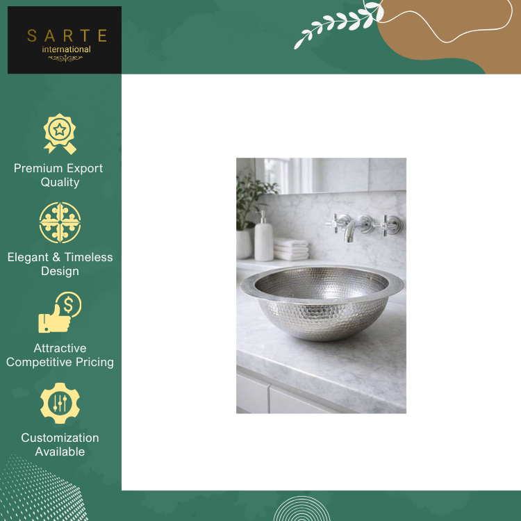 อ่างล้างหน้าทองเหลืองชุบเงินแบบตั้งพื้น ดีไซน์หรูหราทันสมัย ผลิตด้วยมืออย่างประณีต ทนทาน เป็นมิตรกับสิ่งแวดล้อม