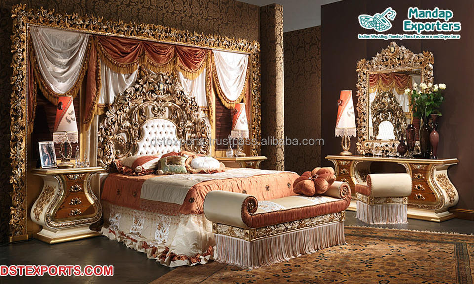 Best Italian Carved Queen King Bed American Style Hot Sale Princess Bed Light Cream Elegant King Size Bed