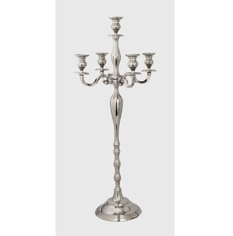 เชิงเทียนตั้งพื้นโลหะโทนสีเงินขนาดใหญ่เชิงเทียน5แขนสำหรับงานแต่งงานงานปาร์ตี้ตกแต่งบ้านสุดหรู
