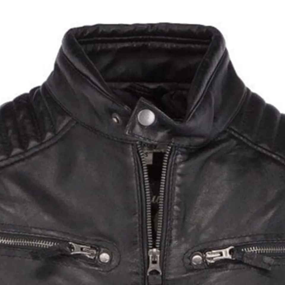 แจ็คเก็ตหนังที่ดีที่สุดสำหรับผู้ชาย แฟชั่นมอเตอร์ไซค์ ทรงเข้ารูป แจ็คเก็ตหนังสั่งตัด คอตั้ง แจ็คเก็ตหนัง PU สำหรับผู้ชาย
