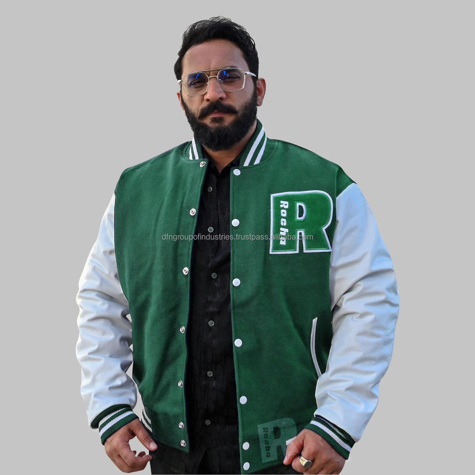 แจ็กเก็ตเลตเทอร์แมนเสื้อแขนยาวหนังแท้สำหรับผู้ชายเสื้อแจ็คเก็ตแบบเท่ๆมีสไตล์สำหรับฤดูหนาว