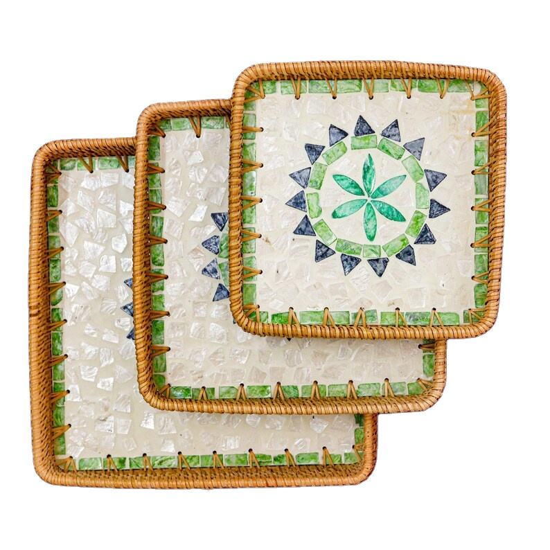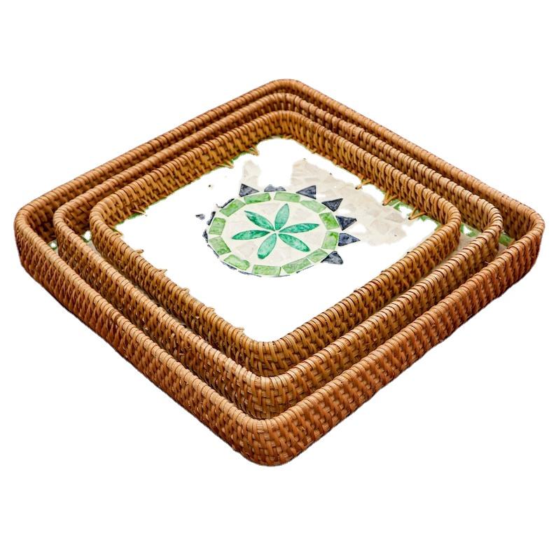 ถาดเสิร์ฟหอยมุกดีไซน์แบบชนบทถาดเสิร์ฟทำจากหวายแฮนด์เมดสุดหรูเหมาะสำหรับอาหารและอาหารเช้า