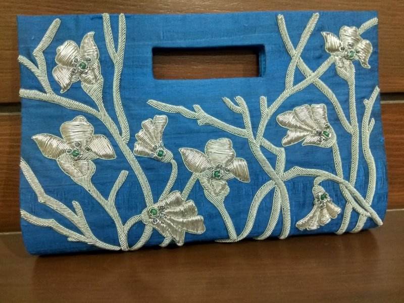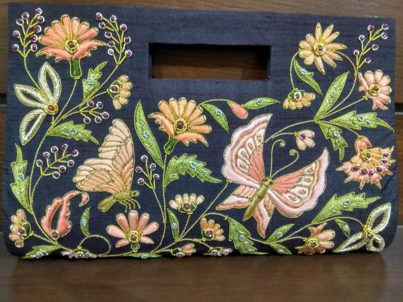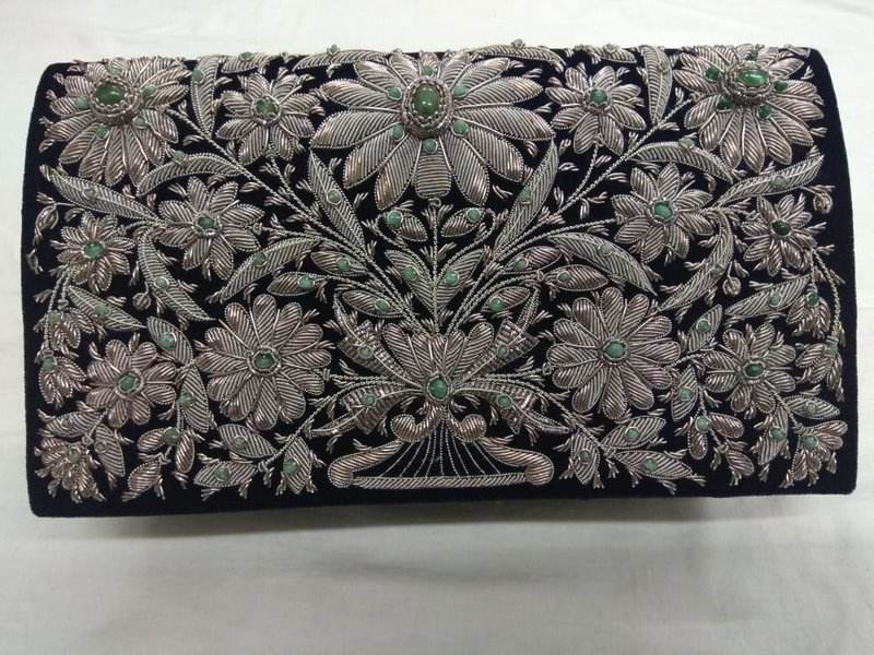 คลัทช์ zari แบบหรูหราที่สุดสำหรับผู้หญิงประดับด้วยอัญมณีหินกึ่งไข่มุกประดับด้วยลูกปัดซับใน PU