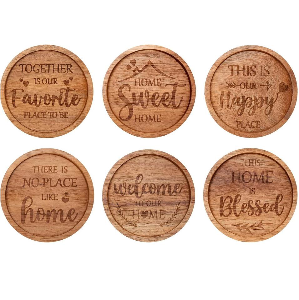 ชุดที่รองแก้วไม้มะม่วงทรงกลมสีธรรมชาติ6ชิ้นขนาด4x4นิ้ว