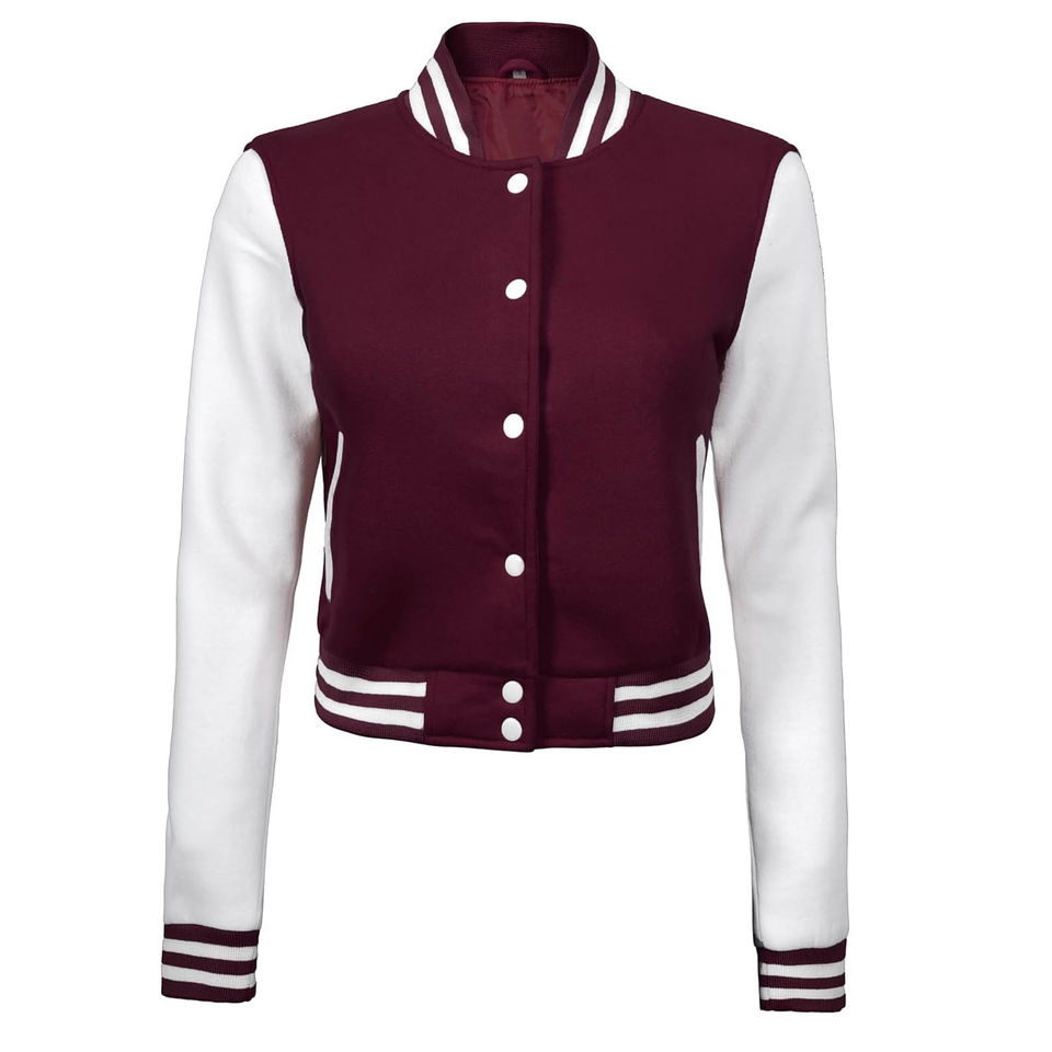 Best Manufactures & Supplier Custom Leather Sleeve Women's Varsity Jacket Contrast Color Stand Collar Ladies Varsity Jackets