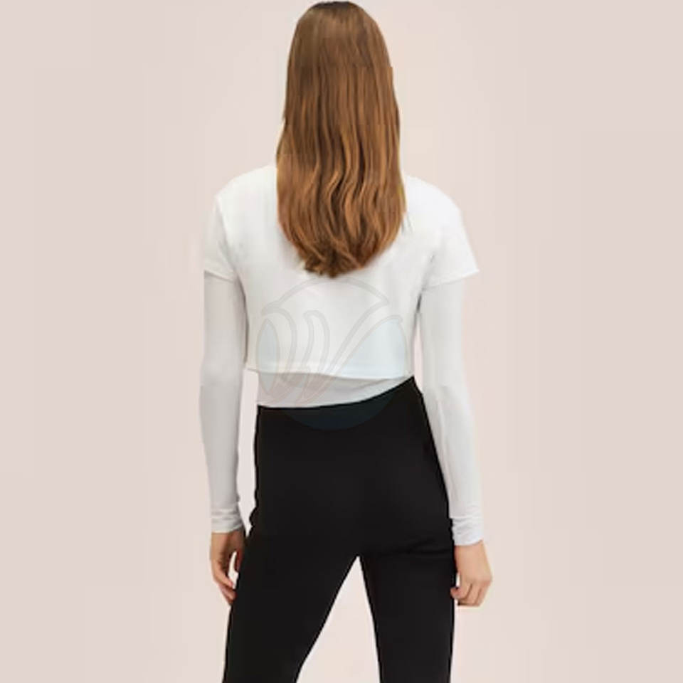 เสื้อยืดลำลองสองชั้นสำหรับผู้หญิงเสื้อยืดใส่สบายลายพื้นโลโก้ด้านหน้าสีพื้นแบบลำลองสำหรับฤดูร้อน