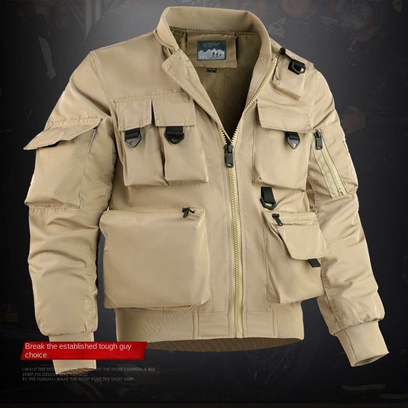เสื้อแจ็กเก็ตใส่ทำงานสำหรับผู้ชายเสื้อผ้าเล่นเบสบอลเสื้อโค้ทแบบมีกระเป๋าอเนกประสงค์