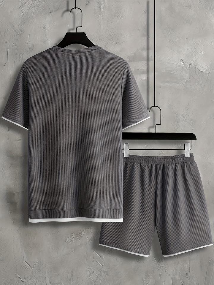 ชุดล่องเรือของผู้ชายเสื้อเชิ้ตแขนสั้นลายทางระบายอากาศได้ดีและกางเกงขาสั้นลำลองสำหรับวันหยุดพักผ่อนชายหาดฤดูร้อน