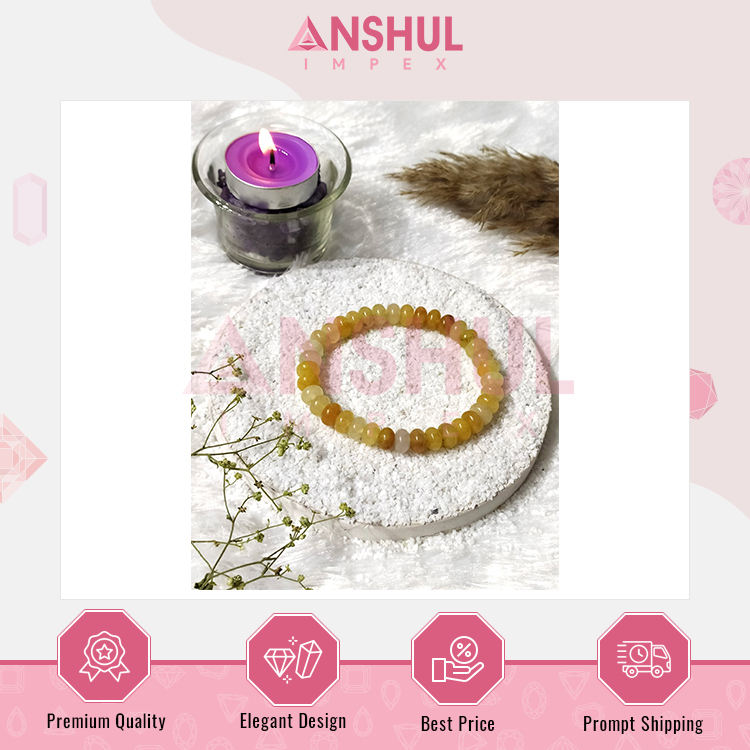 สร้อยข้อมืออัญมณีสำหรับทุกเพศดีไซน์ทันสมัยทนทานและยืดหยุ่นได้ดีที่สุด7-7.5นิ้วสีเหลือง Aventurine rondelle