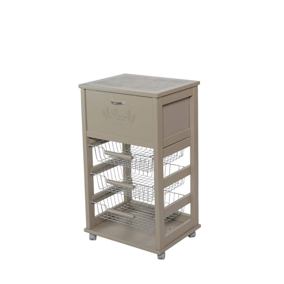 รถเข็นขนมปังไม้บีชแท้ MASLEGNO MAS248 ดีไซน์ทันสมัย ท็อปเซรามิก ล้อพลาสติก มือจับเหล็ก สำหรับจัดระเบียบห้องครัว