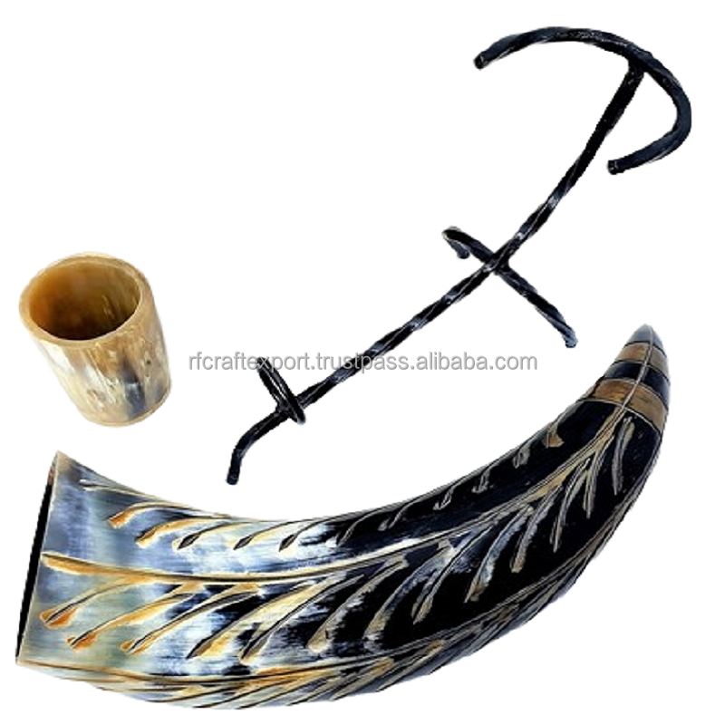 แตรดื่มไวกิ้งแก้ว300มล. แตรวัวธรรมชาติจากอินเดียจากงานฝีมือ RF ดีไซน์ใหม่ที่ดีที่สุด