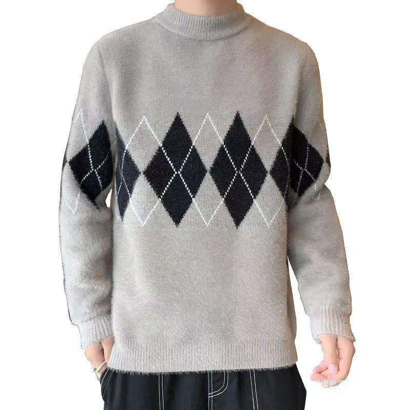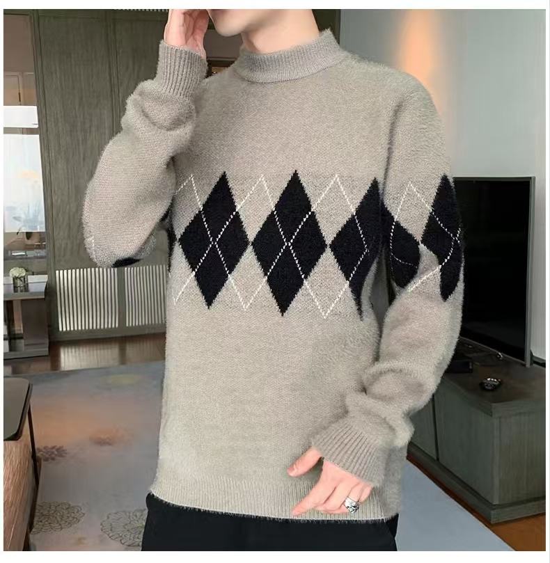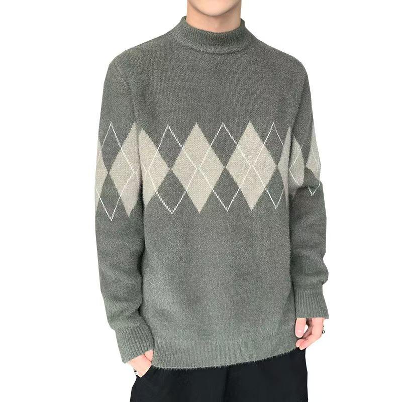 Best New Products Of 2025 Knitwear Check Pattern Daily Color Block Men's Sweaters Stand Collar Comfortable Slim Fit Sweater