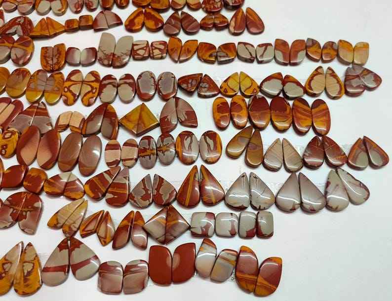Noreena Jasper เครื่องประดับอัญมณีธรรมชาติ Cabochon สีน้ำตาลสวยหลวมคู่ที่ไม่ซ้ำกันและสง่างาม