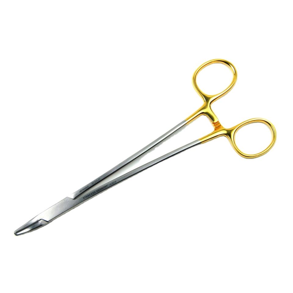 ที่จับเข็มผ่าตัดสำหรับสูตินรีเวชที่ดีที่สุด ทำจากทังสเตนคาร์ไบด์ สำหรับเย็บแผลผ่าตัดอย่างแม่นยำ วัสดุสแตนเลสสตีล พร้อมห่วงทอง ใช้งานด้วยมือ รุ่น MOL