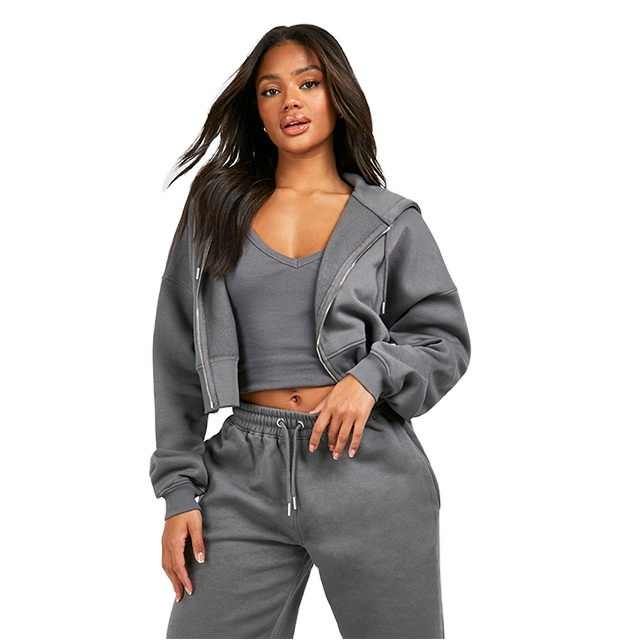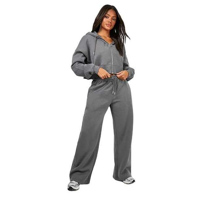 ชุดวอร์ม2ชิ้นแบบเต็มตัวมีซิปมีฮู้ดระบายอากาศได้ดีสำหรับผู้หญิงชุดวิ่งเอวยางยืดทรงหลวม