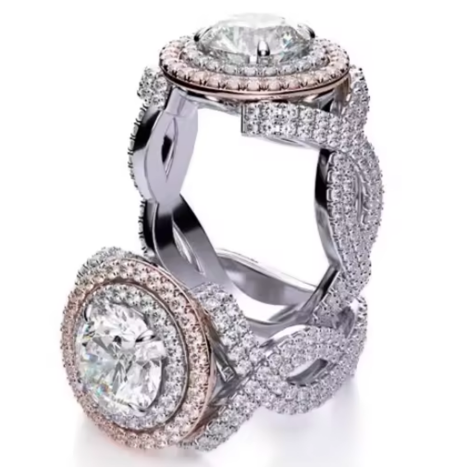 แหวนหมั้นเพชรสองเม็ดสไตล์ Infiniti ทรงกลม7.20 CT ปรับแต่ง OEM & ODM