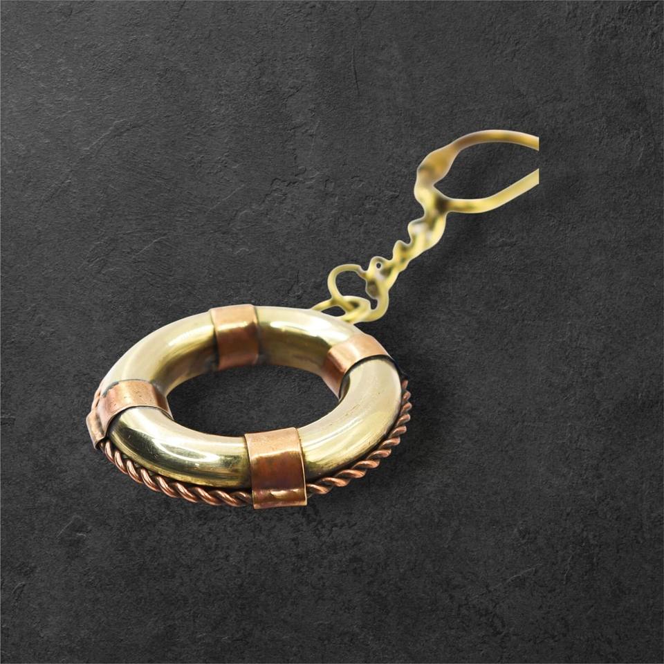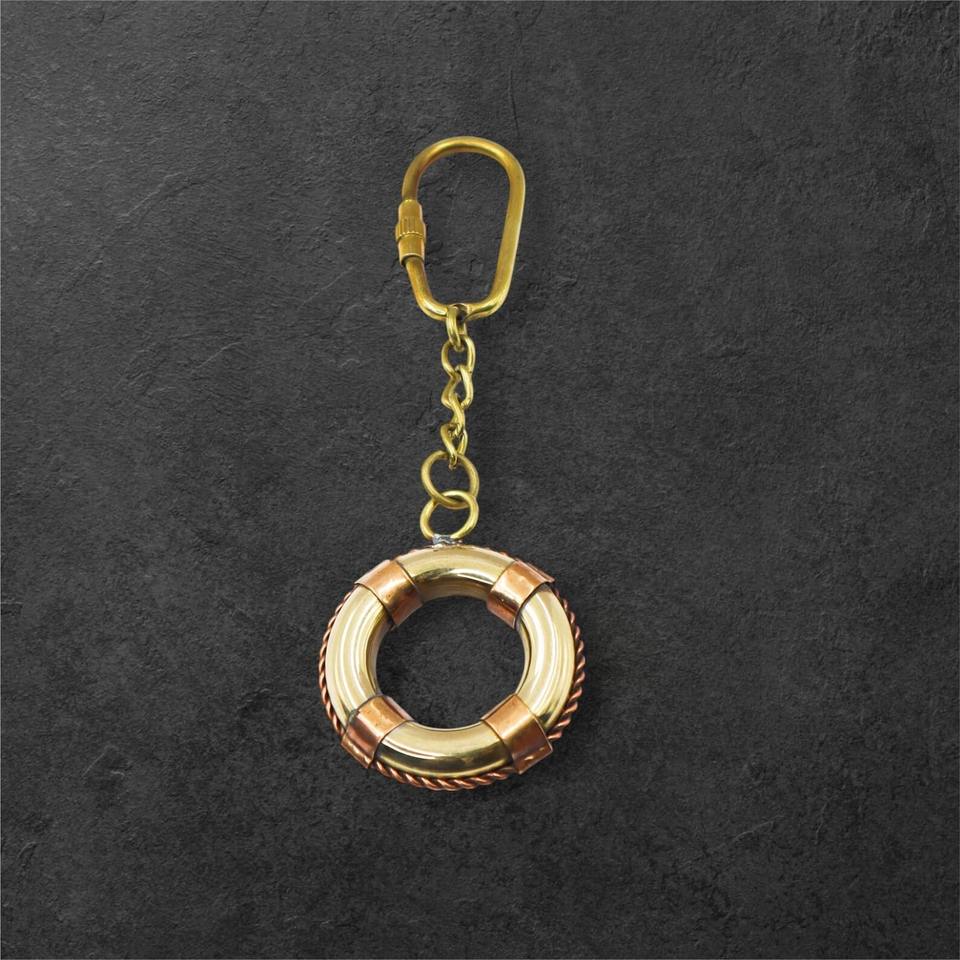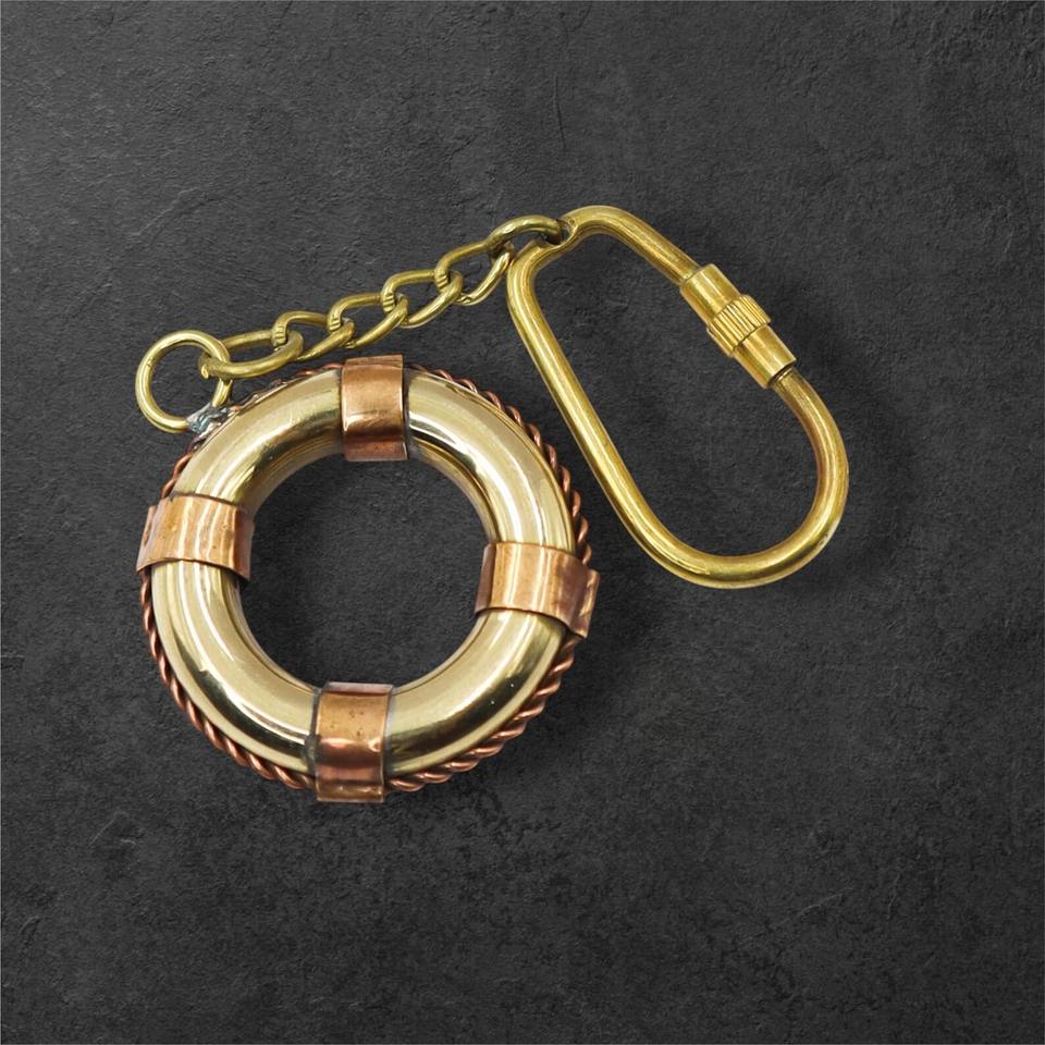 พวงกุญแจทองเหลืองและทองแดงรูปห่วงชูชีพ ดีไซน์โบราณ คุณภาพเยี่ยม