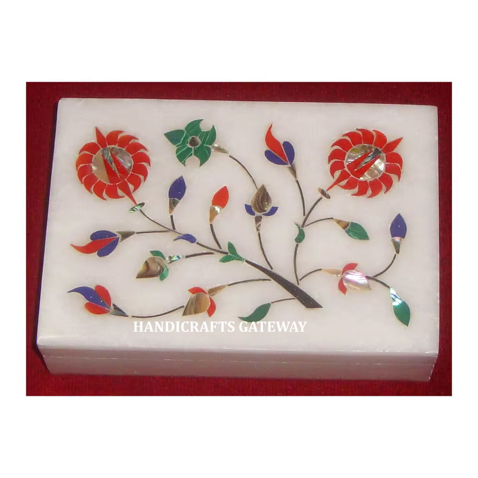 กล่องเครื่องประดับลายดอกไม้สี่เหลี่ยมฝังหินอ่อนสีขาวสำหรับเป็นของขวัญและของขวัญ