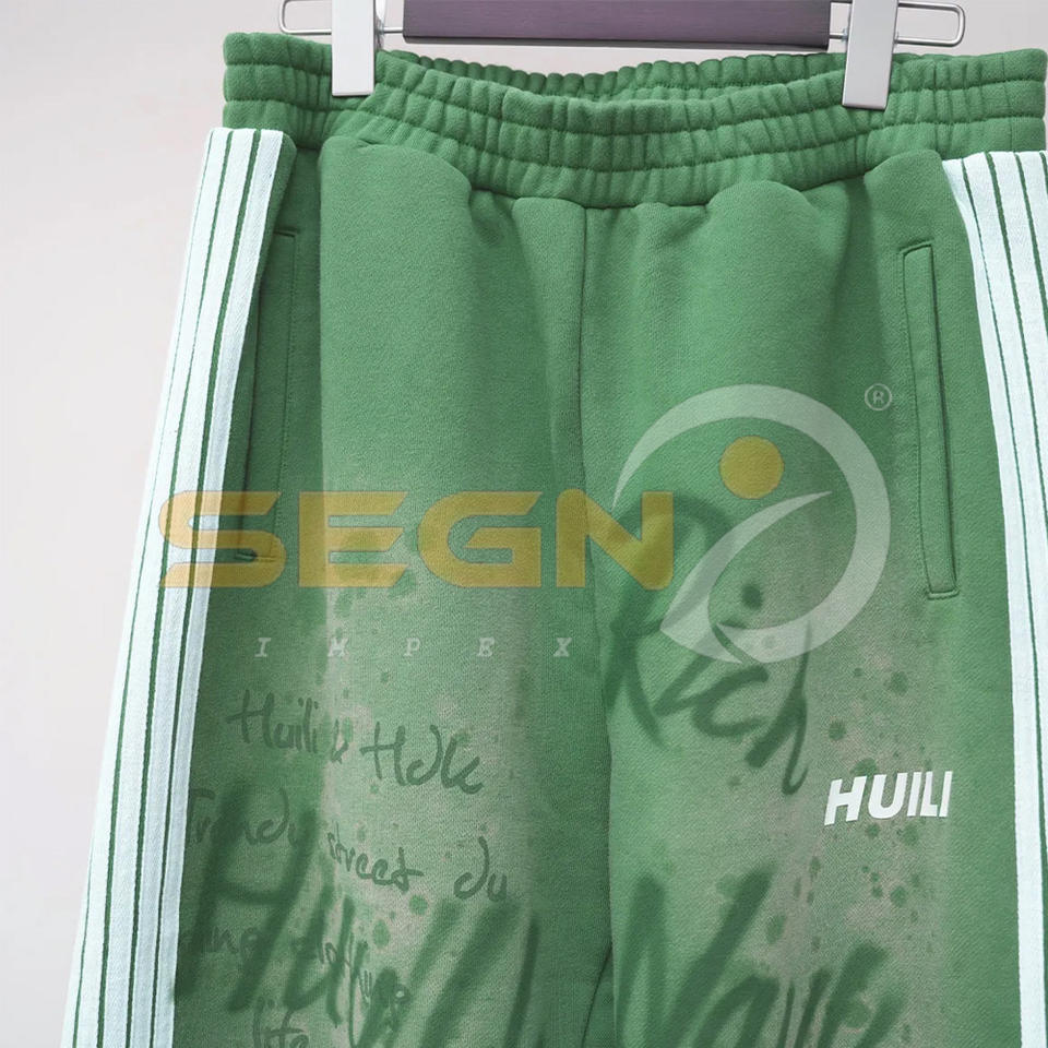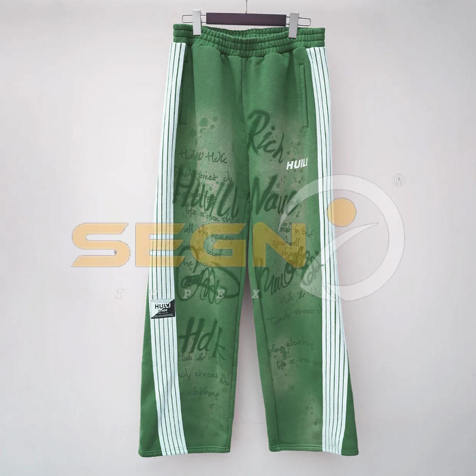 ชุดวอร์มผ้าฝ้ายพิมพ์ลายพัฟกับแสงแดดสำหรับผู้ชายกางเกงขาบานออกแบบได้ตามต้องการ