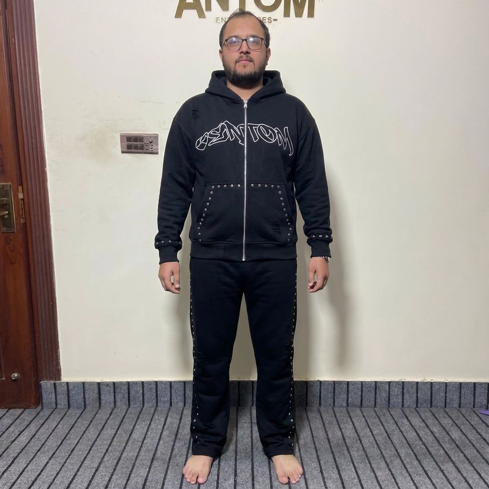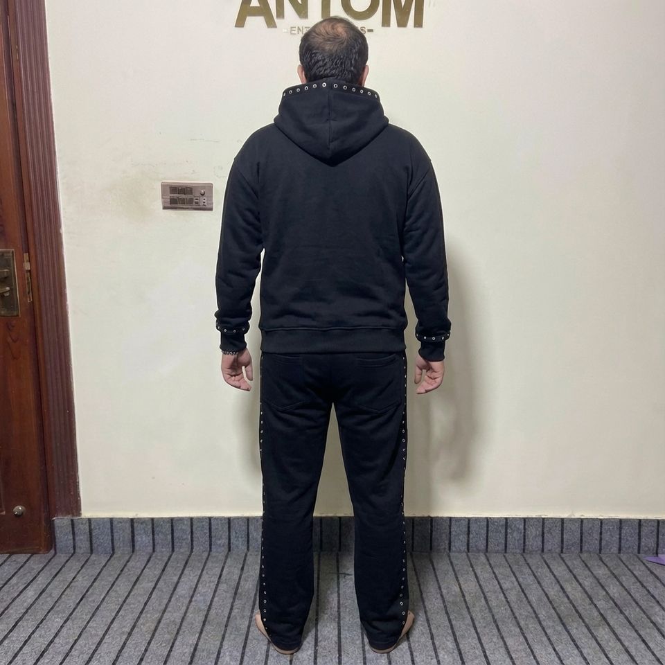 ชุดวอร์มผ้าฝ้ายพิมพ์ลายพัฟกับแสงแดดสำหรับผู้ชายกางเกงขาบานออกแบบได้ตามต้องการ