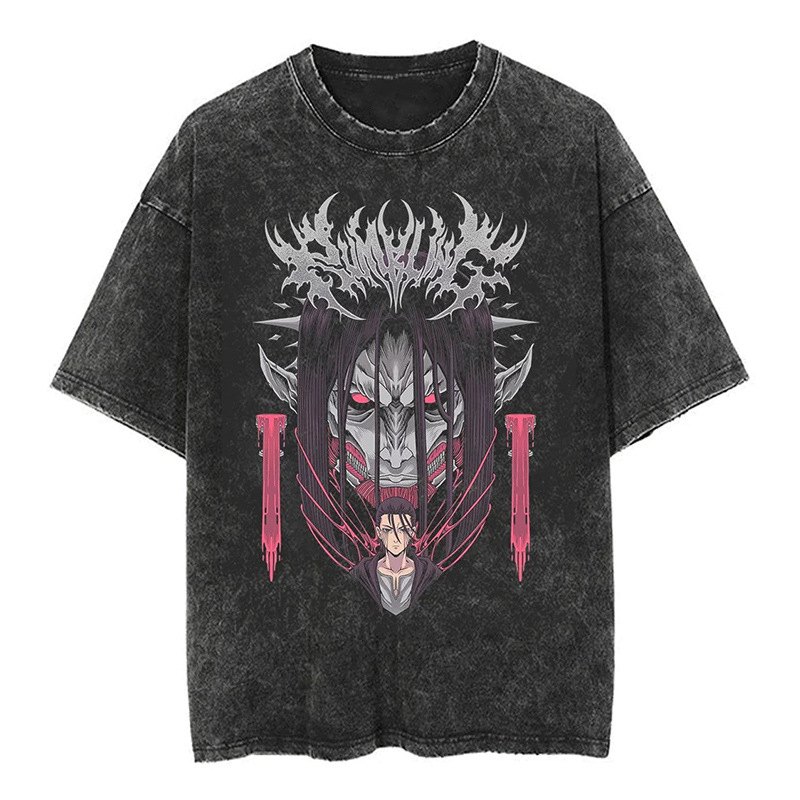 Best Pakistan Manufacturer Anime Printed Streetwear Vintage Washed Men's 100% Cotton Quick Dry Breathable Oversized T-shirt